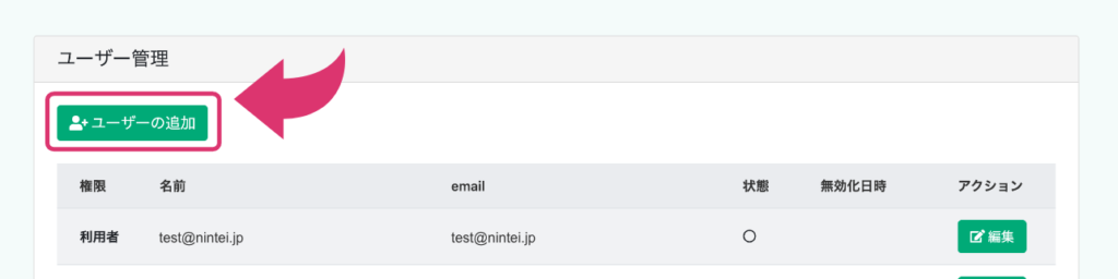 ユーザーを登録・追加する 1.「ユーザー管理」をクリック 2.「ユーザーの追加」をクリック 3. ユーザー情報を入力し、「作成」をクリック。 最終更新日 2021年8月19日 この記事は役に立ちましたか? はい いいえ 関連記事 ユーザー情報を削除する ユーザーを無効化する ユーザー情報を編集する
