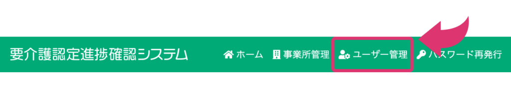 1.ヘッダーメニューから「ユーザー管理」をクリック