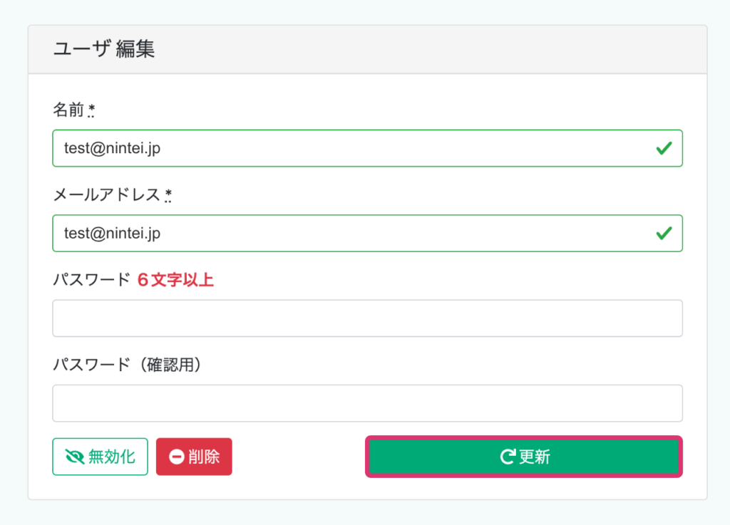3. ユーザー情報を編集し、「更新」をクリック。